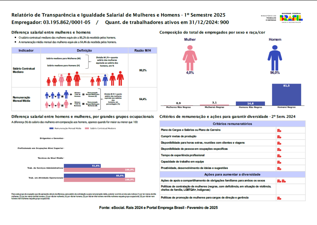 Relatório de Transparência e Igualdade Salarial de Mulheres e Homens - 1º Semestre 2025